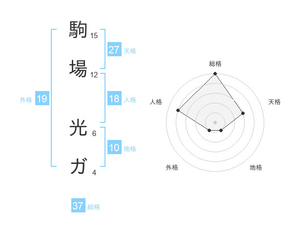 駒場 光ガさんの総格は37画の5点!