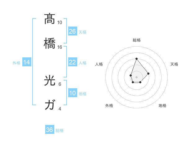 髙橋 光ガさんの天格は26画の2点!