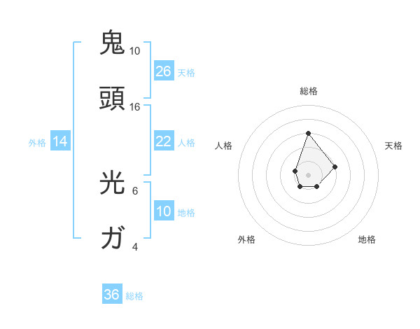 鬼頭 光ガさんを姓名の画数から五運を鑑定