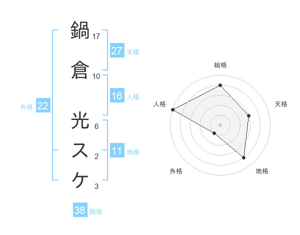 鍋倉 光スケさんを姓名の画数から五運を鑑定
