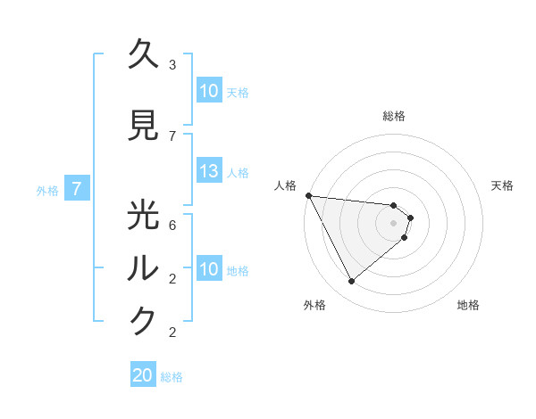 久見 光ルクさんを姓名の画数から五運を鑑定