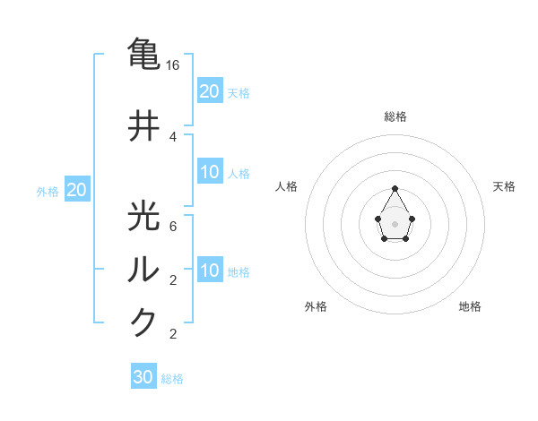 亀井 光ルクさんの総格は30画の2点!