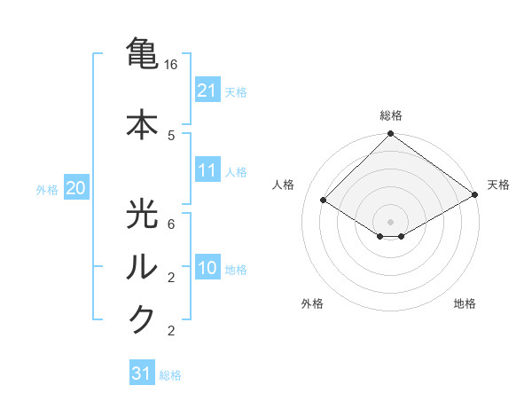 亀本 光ルクさんの天格は21画の5点!
