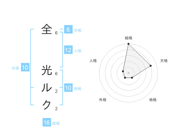 全 光ルクさんの総格は16画の5点!