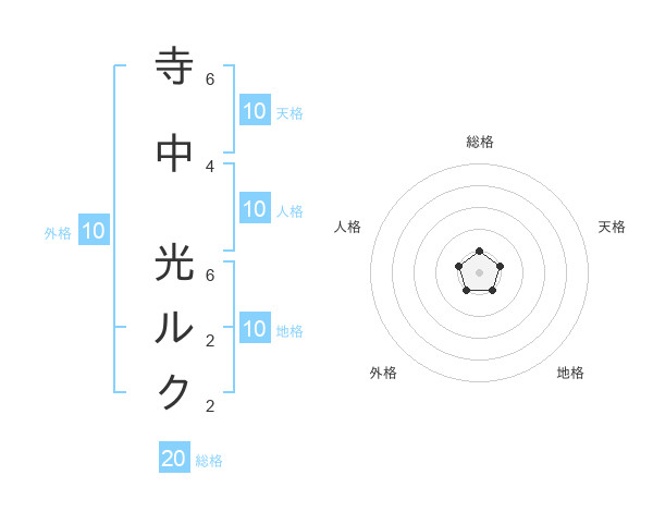 寺中 光ルクさんの総格は20画の1点!
