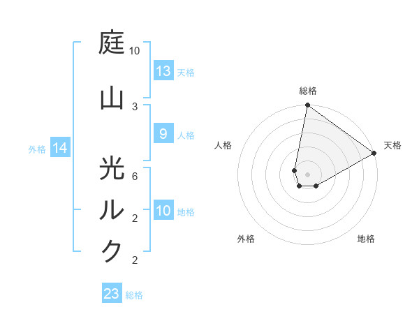 庭山 光ルクさんを姓名の画数から五運を鑑定