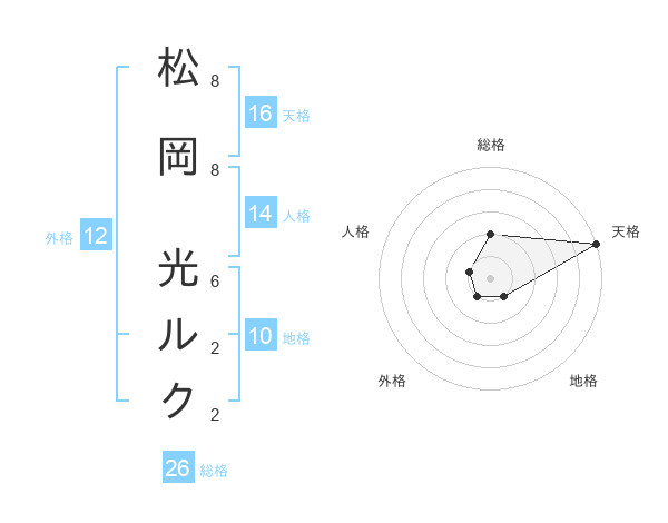 松岡 光ルクさんを姓名の画数から五運を鑑定