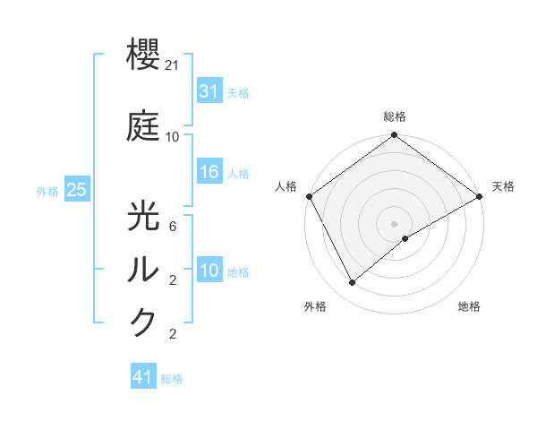 櫻庭 光ルクさんを姓名の画数から五運を鑑定