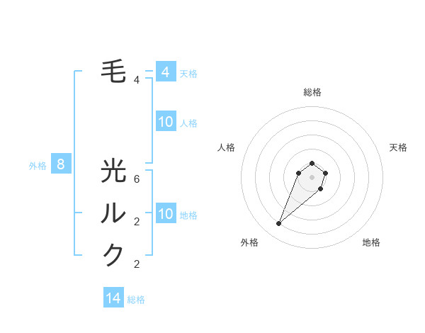 毛 光ルクさんの総格は14画の1点
