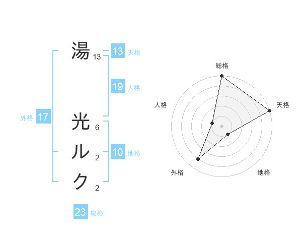 湯 光ルクさんの天格は13画の5点!