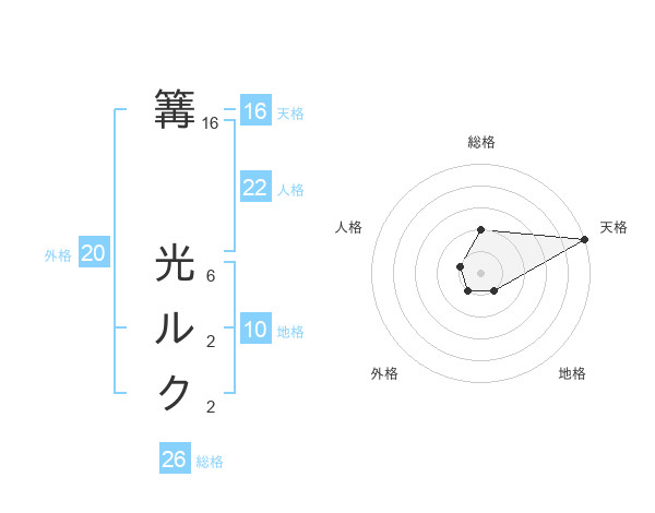 篝 光ルクさんを姓名の画数から五運を鑑定