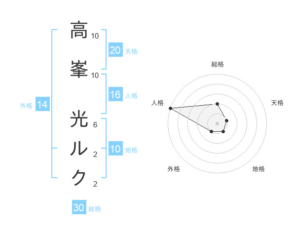 高峯 光ルクさんの総格は30画の2点!