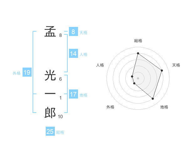 孟 光一郎さんを姓名の画数から五運を鑑定