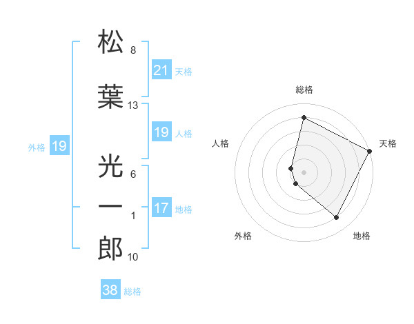 松葉 光一郎さんの天格は21画の5点!