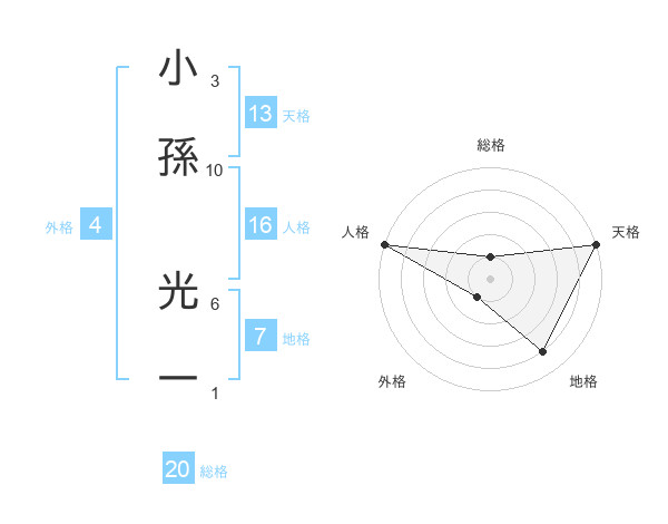小孫 光一さんの天格は13画の5点!