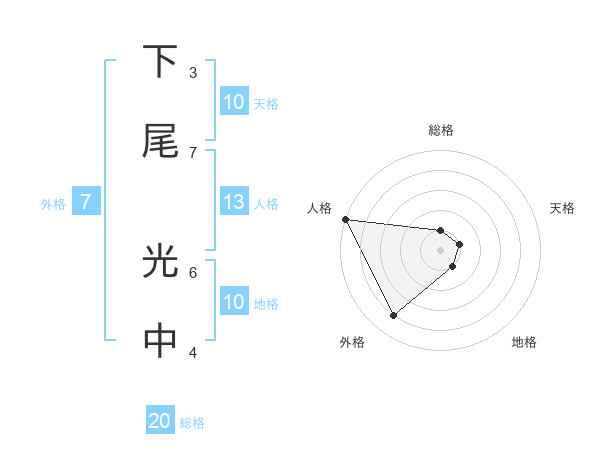 下尾 光中さんの総格は20画の1点!