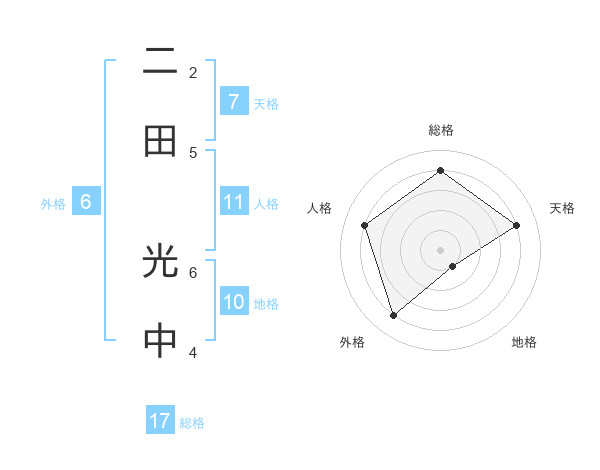 二田 光中さんの総格は17画の4点!