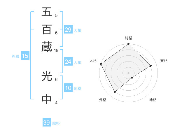 五百蔵 光中さんを姓名の画数から五運を鑑定