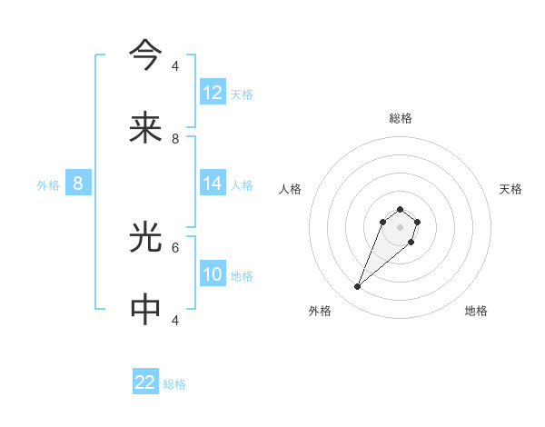 今来 光中さんの総格は22画の1点!