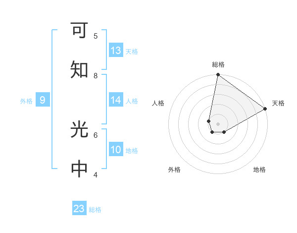 可知 光中さんの天格は13画の5点!