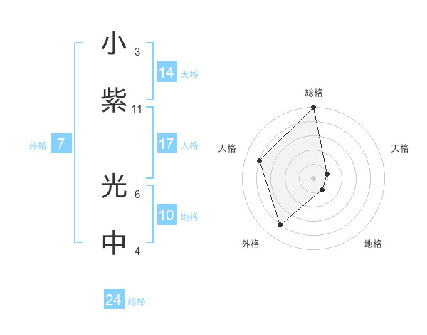 小紫 光中さんの総格は24画の5点!