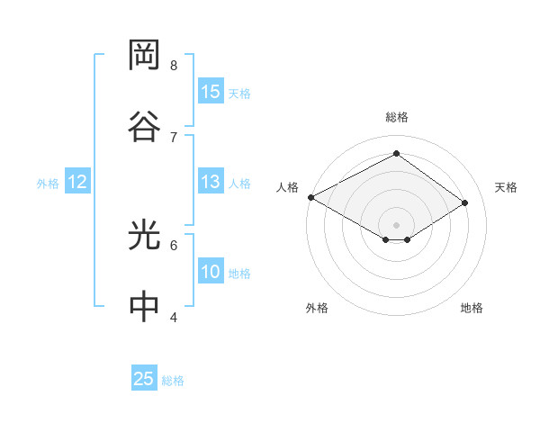 岡谷 光中さんを姓名の画数から五運を鑑定