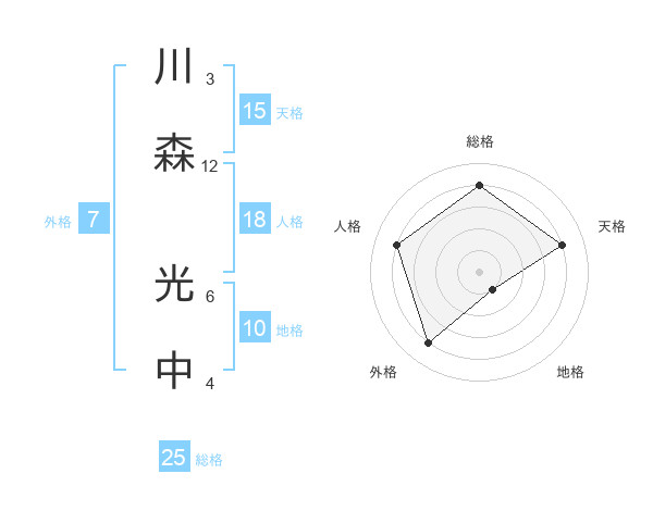 川森 光中さんの総格は25画の4点!