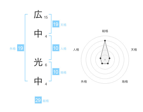 広中 光中さんの総格は29画の4点!