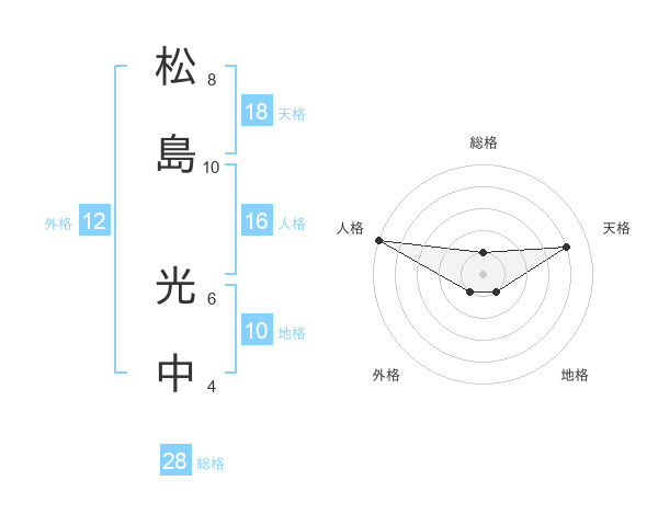 松島 光中さんの総格は28画の1点!