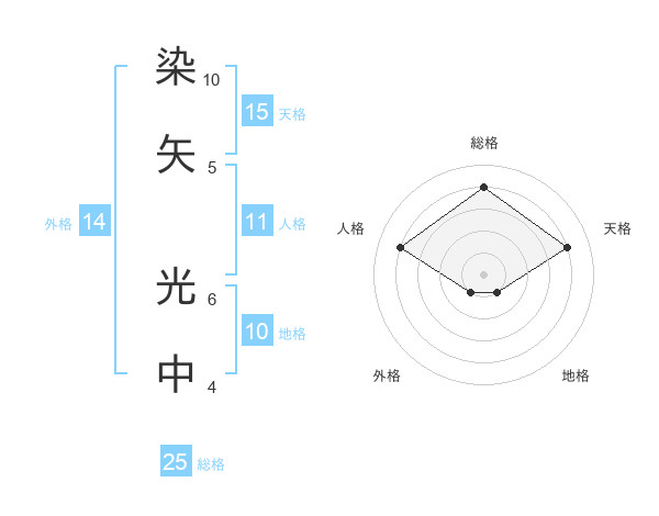 染矢 光中さんの総格は25画の4点!