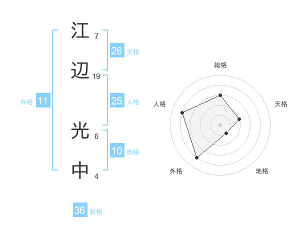 江辺 光中さんの天格は26画の2点!