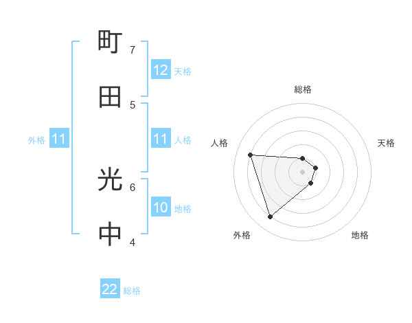 町田 光中さんの総格は22画の1点!