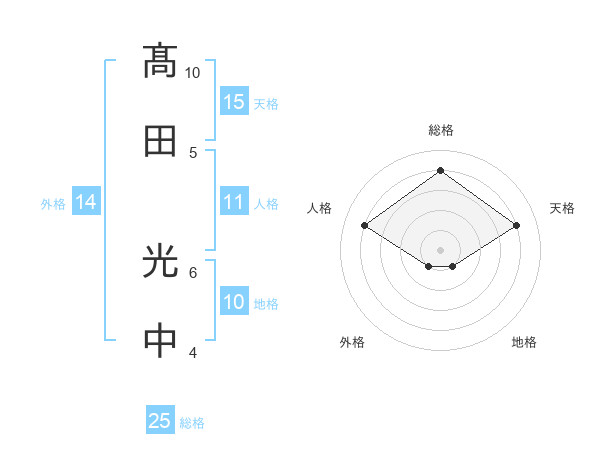髙田 光中さんの総格は25画の4点!