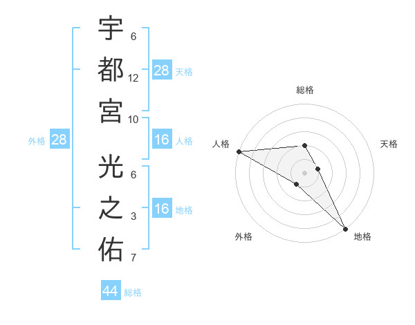 宇都宮 光之佑さんを姓名の画数から五運を鑑定