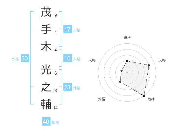 茂手木 光之輔さんの天格は17画の4点!