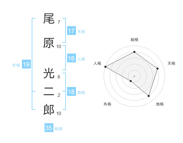 尾原 光二郎さんを姓名の画数から五運を鑑定