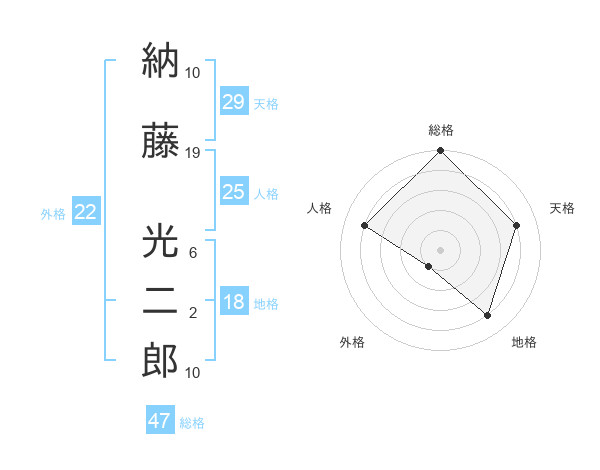 納藤 光二郎さんの総格は47画の5点!
