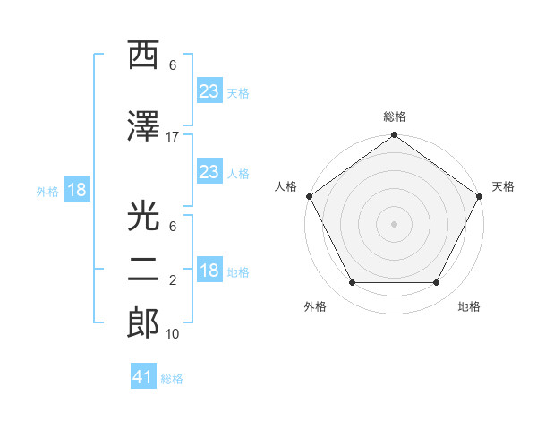 西澤 光二郎さんを姓名の画数から五運を鑑定