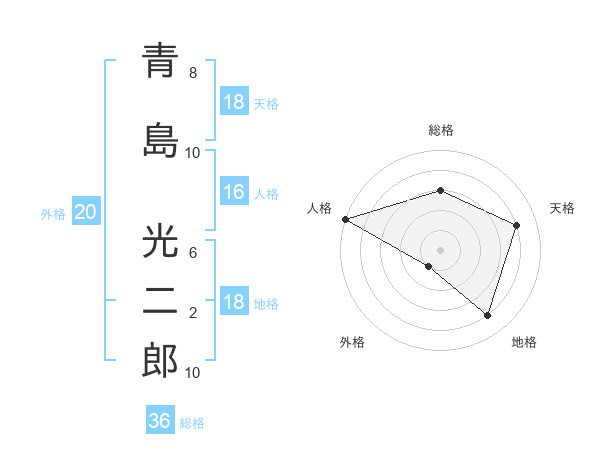 青島 光二郎さんを姓名の画数から五運を鑑定
