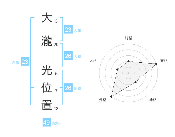 大瀧 光位置さんを姓名の画数から五運を鑑定