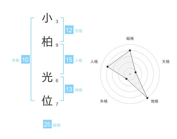 小柏 光位さんの総格は25画の4点!