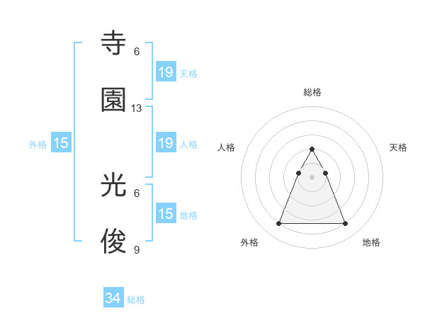 寺園 光俊さんの総格は34画の2点!