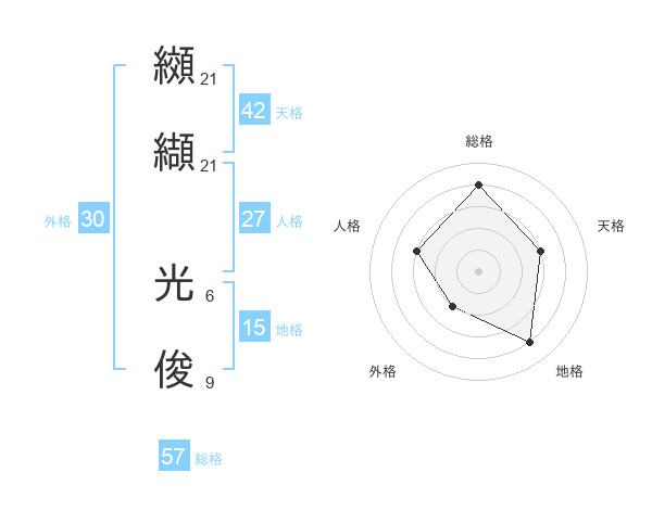 纐纈 光俊さんの総格は57画の4点!
