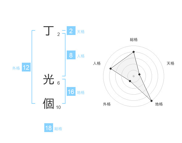 丁 光個さんの総格は18画の4点!