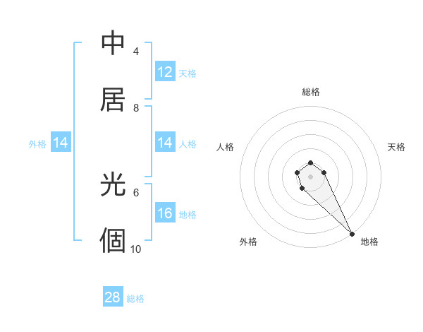 中居 光個さんの総格は28画の1点!