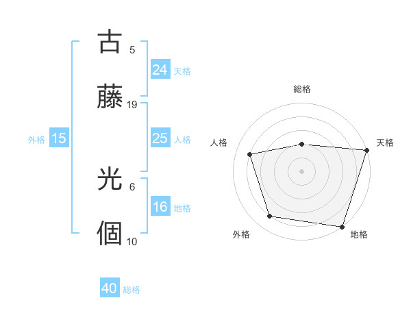古藤 光個さんの天格は24画の5点!