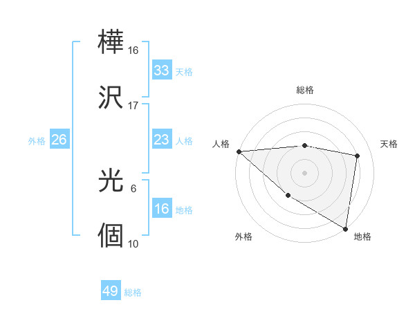 樺沢 光個さんを姓名の画数から五運を鑑定