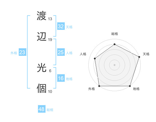 渡辺 光個さんを姓名の画数から五運を鑑定