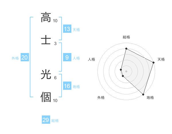 高士 光個さんの天格は13画の5点!