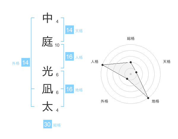 中庭 光凪太さんを姓名の画数から五運を鑑定